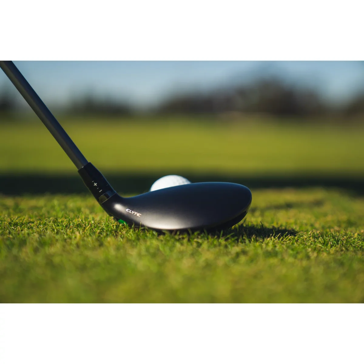 Callaway Elyte hybrid behind ball on fairway at address