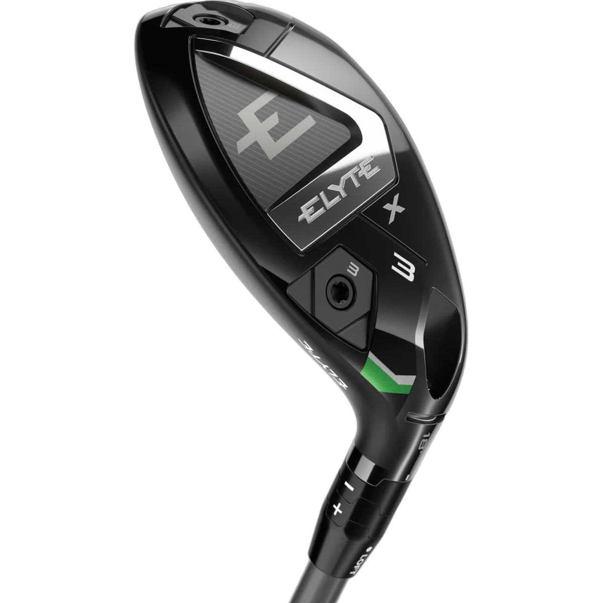 What sets the Elyte apart from most hybrids in the category is its adjustability. Callaway built in interchangeable heel-toe weights -- a 13-gram tungsten weight and a 3-gram aluminum weight that can be swapped between the heel and toe positions to toggle between a neutral and draw-biased ball flight. The company claims up to 13 yards of shot-shape adjustability when you combine the weight system with the OptiFit 4 hosel, which offers seven unique loft and lie combinations. That is driver-level tunability in a hybrid, and it is genuinely useful.