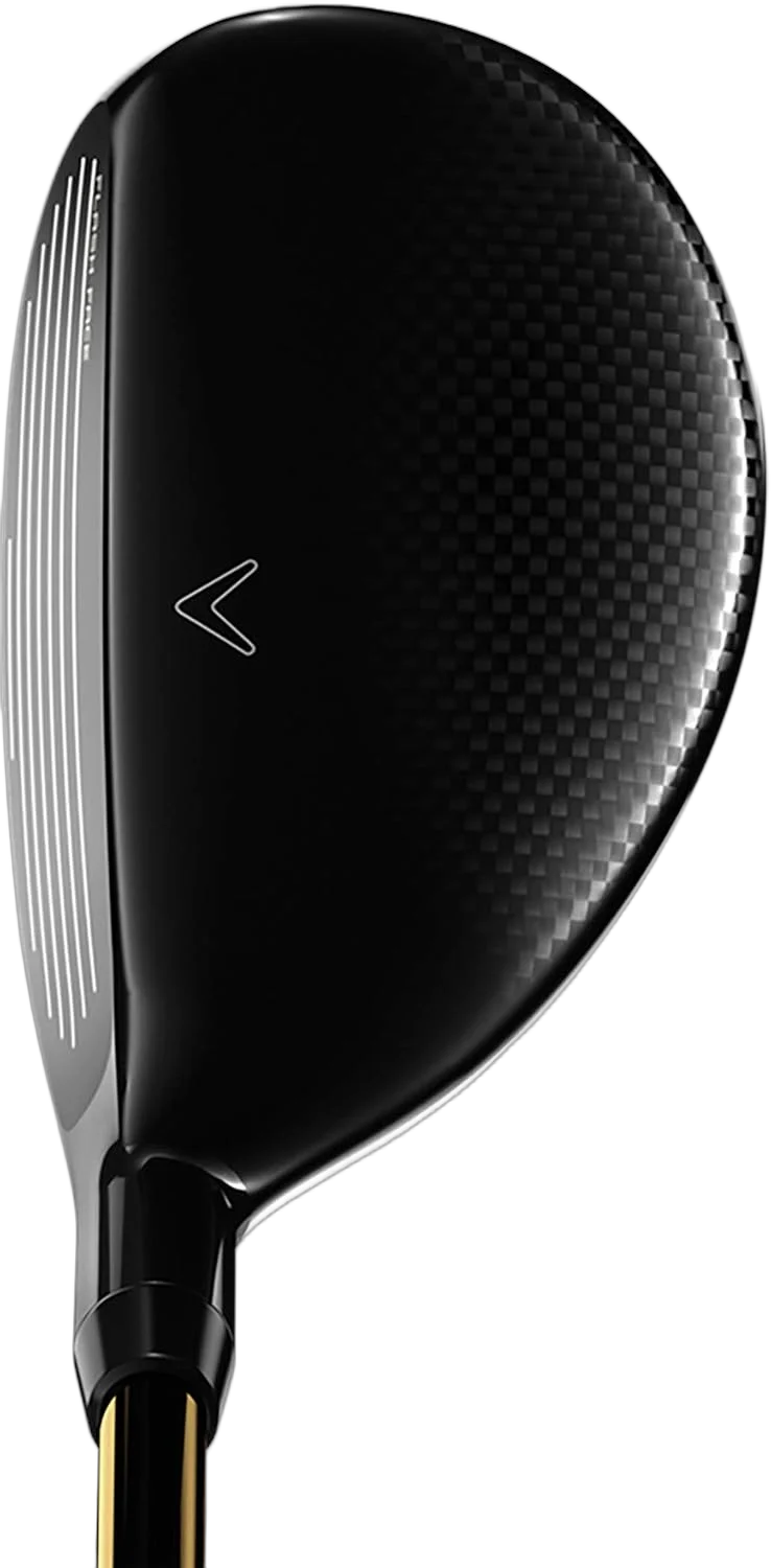 The crown features Callaway's Speed Step -- a subtle raised ridge designed to improve aerodynamics -- flanking a white chevron alignment aid. The Triaxial Carbon weave is visible on the crown, giving the club a premium, technical look. The dark charcoal and silver color scheme is understated and ages well. It is not a flashy club, but it looks purposeful and inspires confidence at address, particularly for golfers who want to see a generous hitting area without the intimidating profile of a utility iron.