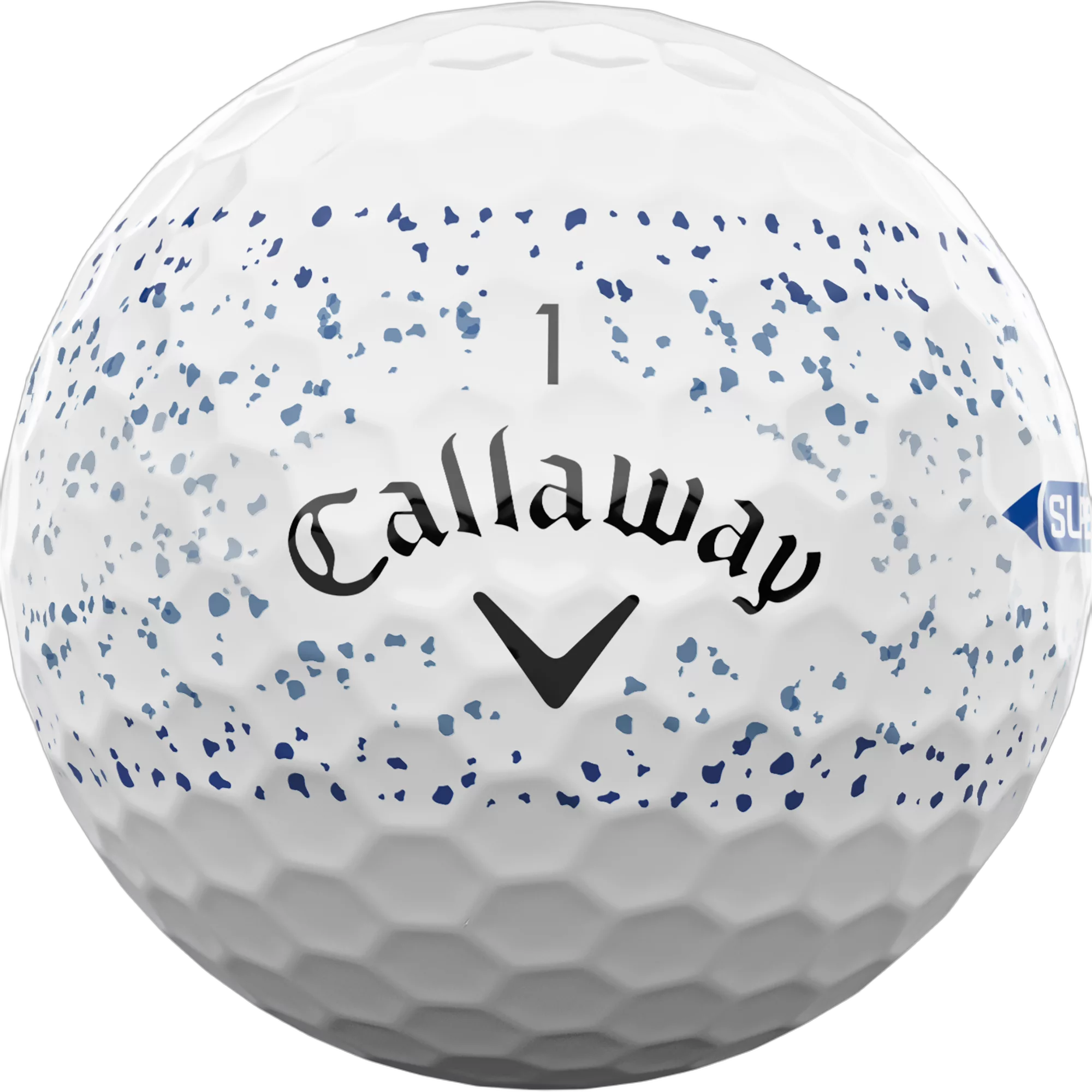 This is a two-piece ball with a compression of just 41 — one of the softest on the market. It features Callaway's HyperElastic SoftFast Core for ball speed, a hybrid multi-material cover with Paraloid Impact Modifier for durability and short-game feel, and HEX Aerodynamics for reduced drag. Available in white, yellow, pink, red, orange, and green, plus splatter and limited-edition patterns.