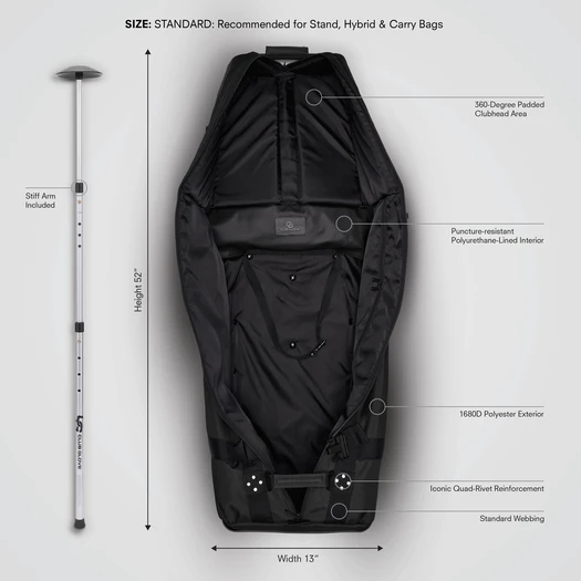 The included Stiff Arm is a significant value add at this price point. Many competitors sell their internal support rod separately for $30-$40, which effectively raises their real-world price. Club Glove includes it in the box, and it's the same adjustable telescoping design used across the entire lineup โ essential for preventing clubhead damage from overhead pressure during airline transit.