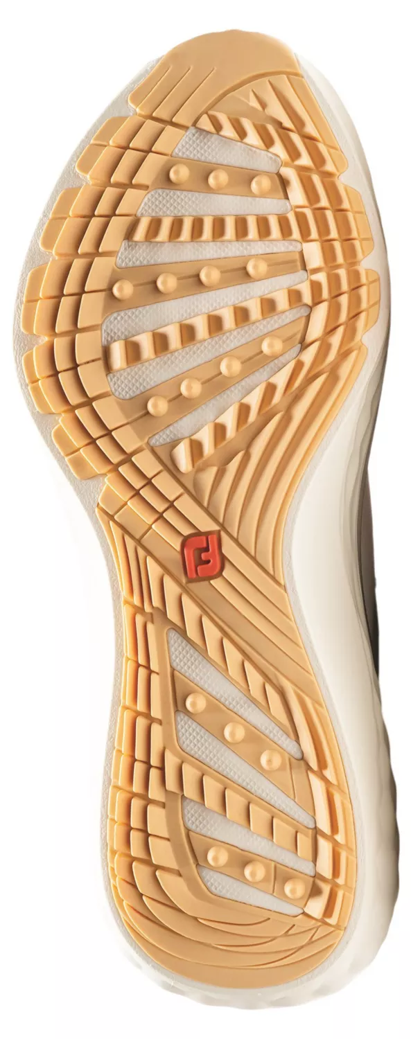 The Quantum's spikeless outsole uses a dimple-pattern rubber tread with FootJoy's multi-dimensional traction design. On dry fairways and firm conditions, it provides adequate grip for the swing and confident footing between shots. The traction pattern targets rotational stability โ the forces that matter most when you're rotating through impact โ and it handles that job competently.